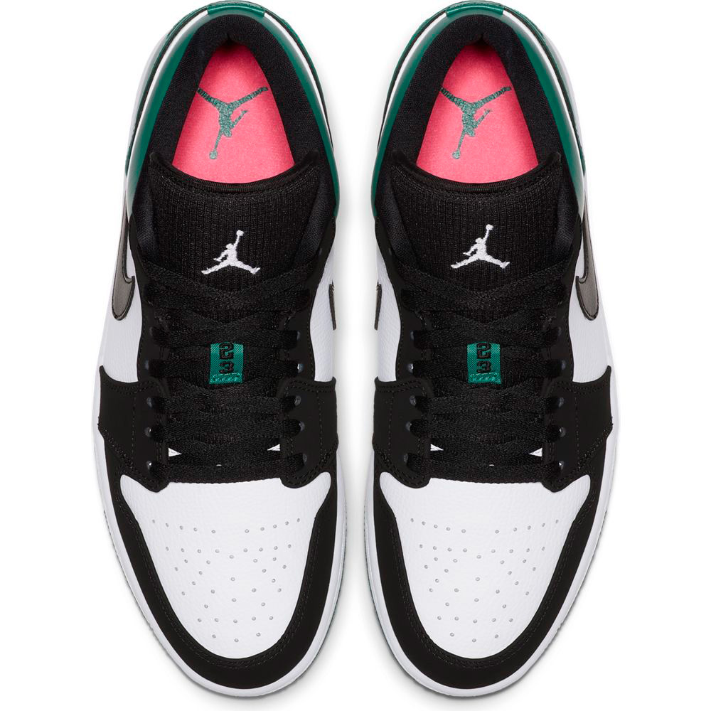 ホワイト、ブラック、ミスティックグリーンを採用したジョーダン1LOW。 シュータンにジャンプマンロゴ、ヒールにウイングロゴが落とし込まれ、シューレース部分にはマイケルジョーダンの背番号である「23」があしらわれた1足。