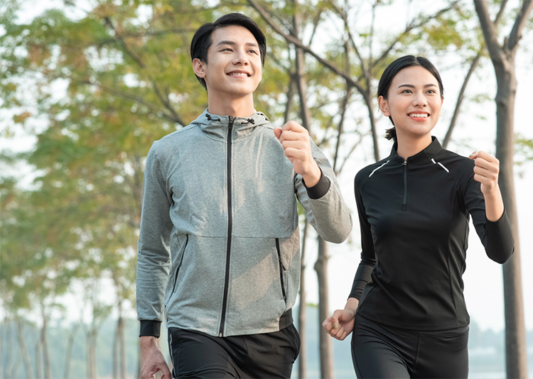 時速7km程度、自然と走り出さないギリギリの速度でのウォーキング。 ランニングよりも足への負担が少なく、ランニングと同等以上の運動効果が得られます。