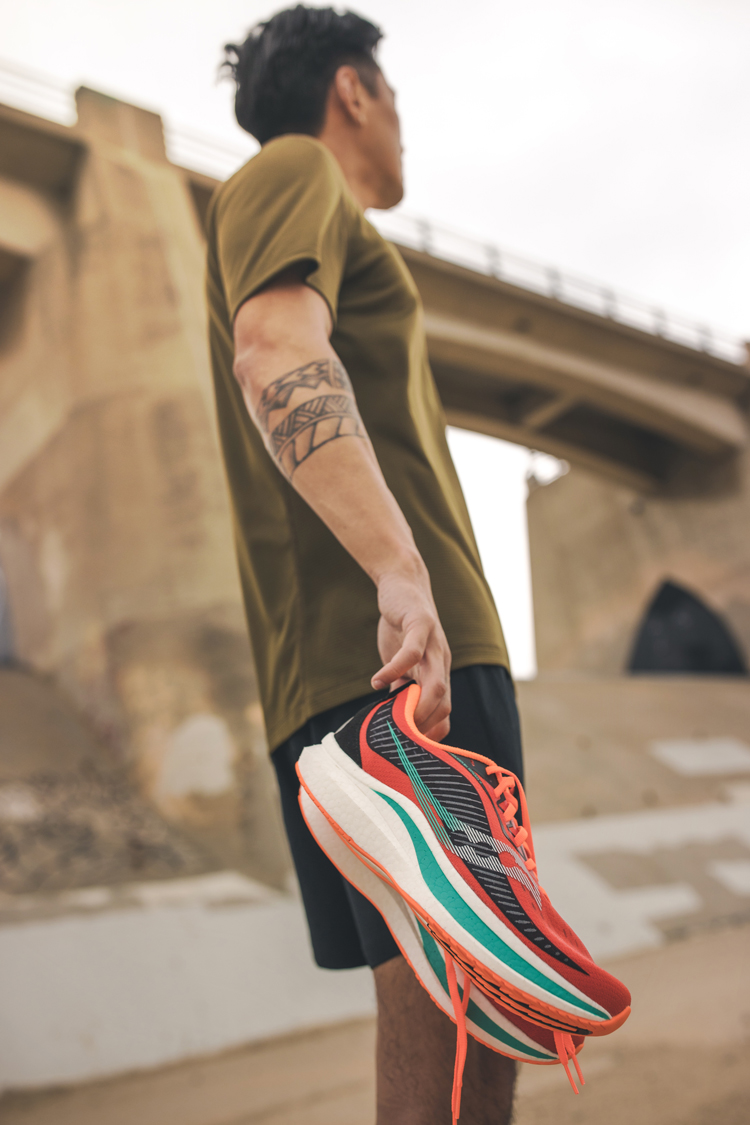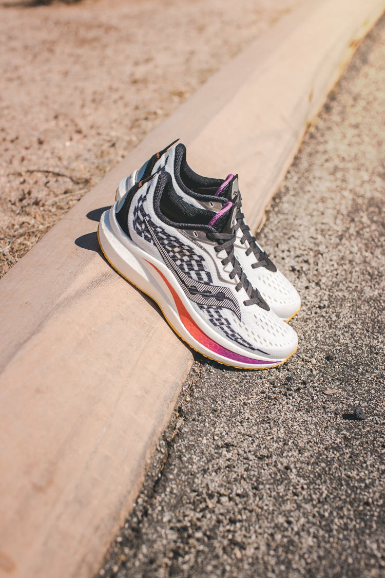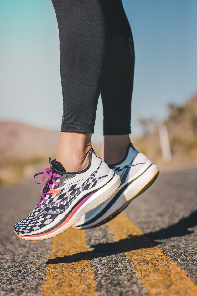 2020年6月1日にSAUCONY史上初のカーボンプレート搭載の厚底シューズ エンドルフィンプロを筆頭に、多くのランナーに衝撃を与えることとなったエンドルフィン コレクションのデビューから約1年。初代コレクションをアップデートさせた待望の新作『エンドルフィンコレクション 2』がいよいよ国内デビューとなる。尚、本コレクションより新たにトレイルカテゴリーに属するエンドルフィントレイルがラインアップに加わり大幅にパワーアップされた。機能面やラインアップの拡大もさることながらデザインテーマにも一つのこだわりを見せる。【READY,SET,DREAM】がブランドテーマとなる今シーズンにおいて、夢想と題されたチェック柄のREVERIEは不思議の国のアリスからインスパイアされたまさに幻想的なパッケージデザインとなっている。