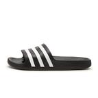 シンプルでつややかなスリッポンの作りにスリーストライプを配している。