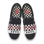フロントにはチェッカーボードデザインにカタカナで「ヴァンズ」と「オオサカ」をプリント。