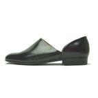 履き口のV字のカッティングが足元をスッキリ見せてくれて、気軽に履けて脱ぎ履きラクチンのシンプルスリッポンシューズです。