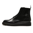 ミニマルなラウンドトゥデザインのレースアップタイプ。光沢のある質感と全体を黒のみで統一したミニマルさ、シャークソールのデザイン等、あくまでも綺麗目に昇華させ、キレカジのスタイリングにすんなり馴染みやすいシルエットに仕上げました。