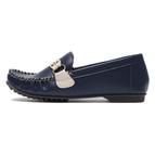 甲の飾りベルト部分に金属アクセサリーがついたローファー。個性的でエレガントな印象を演出してくれます。