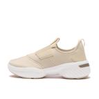アッパーはスリッポン構造で脱ぎ履きしやすく、足を包み込むような柔らかなニット調メッシュアッパーを採用しています。