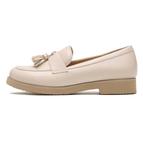 甲部分に房の飾りがついたローファー。ボトムスにはきれいめなスラックスが好相性。