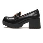 甲の飾りベルト部分に金属アクセサリーがついたローファー。個性的でエレガントな印象を演出してくれます。