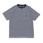 太めボーダーのポケット付き半袖Tシャツ。