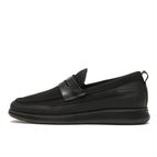 糸を複雑に編み込んだ肉厚なニット素材とレザーをアッパーに使用したローファースタイル