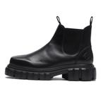 シャープなエッジを効かせたスクエアトゥ、ボリュームインパクトのある5p超の厚底ソールを使用。抜群の存在感で、モードな雰囲気&重厚感のあるデザイン。