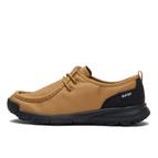 モカシンタイプのアッパーはメッシュとヌバック調の合皮を組み合わせ、アウトドアカジュアルに合わせやすく・雨天時の履きやすさも意識したデザインです。