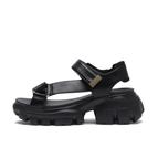 定番のテープサンダルデザインを、レザー調素材で作成し品のある仕上がりにアレンジ。