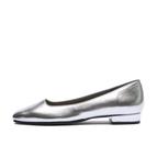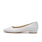 履いた時に、シルエットがきれいに見えるようにこだわった、履き口のスクエアカットがポイントのフラットパンプスは、2センチのローヒールで疲れにくく、デイリーに使えます。