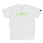 ジュニア向けTシャツ。ユニセックスモデルにも採用しているアシックスロゴにシーズングラフィックの矢絣を使用した昇華プリントモデル。パンツは2064A084とセットアップ可能