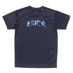 ジュニア向けTシャツ。ユニセックスモデルにも採用しているアシックスロゴにシーズングラフィックの矢絣を使用した昇華プリントモデル。パンツは2064A084とセットアップ可能