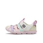 イフミーキッズウォーターシューズ。内側と外側が両ベルト仕様となっており、大きく開く仕様でとっても履きやすいサンダルです。涼し気なデザインですが、爪先はしっかりガードされているので安心感があります。靴底に穴があいており、さらにインソールにも穴があいていることから、水が良く抜け通気性が抜群となっております。