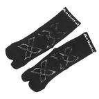 従来のフットサポーターに比べ、足裏グリップの地面との設置面を改善し、より力を発揮しやすくなりました。解剖学的アプローチにより足裏の筋膜を保護・サポート。足の甲、アキレス腱部分にX型のラバープリントを施すことによってプロが行うテーピングに近い感覚が得られるようになってます。