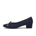 アーモンドトゥの木型に、リボン先のGOLDチップが程よい甘さのパンプスは、程よい高さの3cmのストレートヒールで、とても履きやすい1足です。
