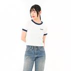 胸のワンポイント刺繍とリブの色を合わせた、デイリーに使えるリンガーT。