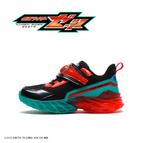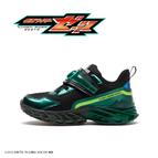 “ 胸に巻く変身ベルト ”「 ゼッツドライバー 」 をモチーフに、シューズベルトをななめに取り付けた 本商品 は、歩くたびに振動によってベルト部分が光る 仕掛けが施されています 。