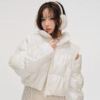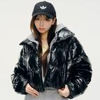 非常に光沢のある素材が存在感を放ち、軽量なパッドが快適さを保ち、ファッション性を犠牲にすることなく冬の寒さに対応できる。