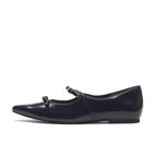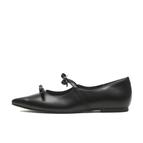 日本国内生産、神戸のメーカーが手掛けるポインテッドの木型のWリボンのフラットパンプスは、甘くなりすぎず、きれいめなフラットパンプスです。