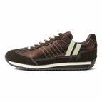 「MARATHON」の素材提案モデルです。アッパーはクラッキングのメタリックフィルムが施されたステアレザーを使用しています。チョコはマット調なメタリックを使用しています。カラーリングにも拘り、ビンテージ感のある一足に仕上げました。