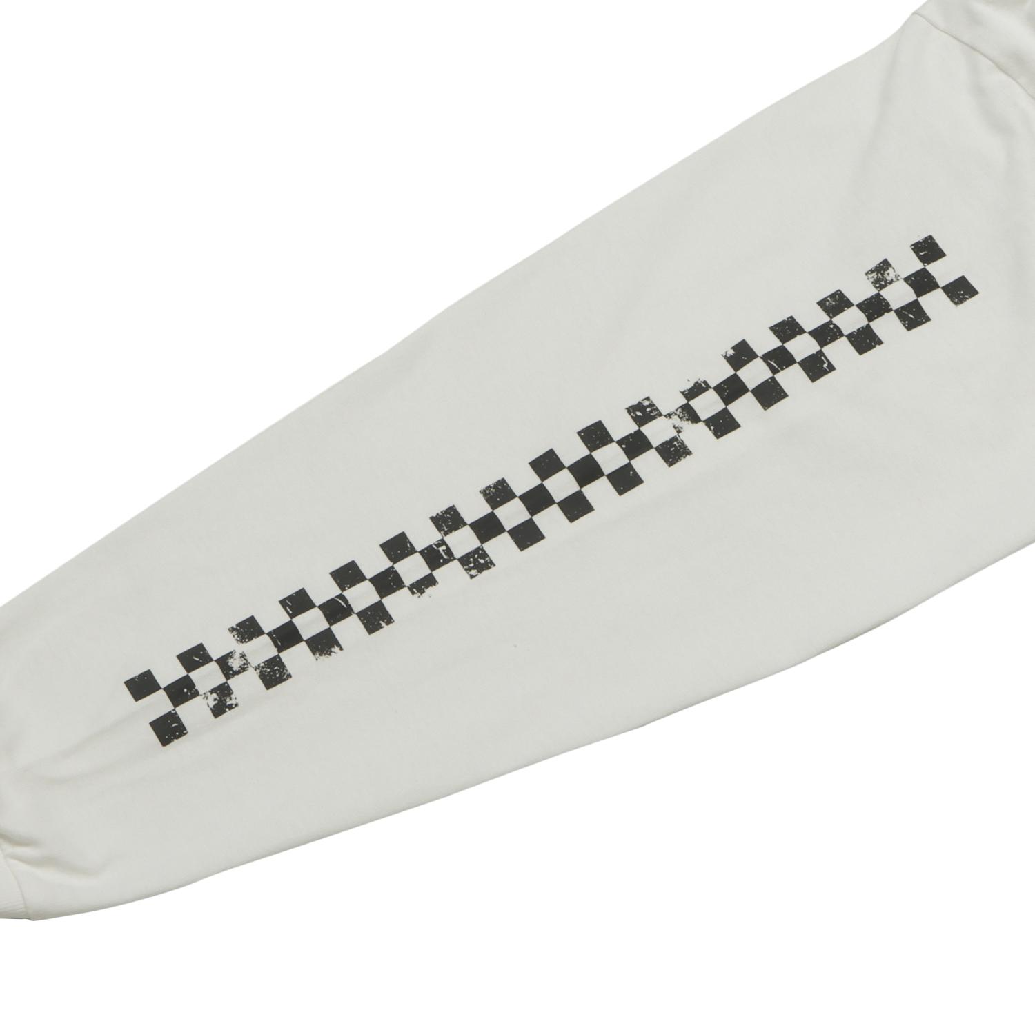 右袖に同じくグランジ加工で掠れたチェッカーラインをプリント。