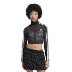 トリコット生地で作られたトラックスーツトップスは、シルエットを引き立てるスリムフィット仕立てで、ハイネックとジップクロージャーがスタイリッシュさと機能性の両方を高めている。