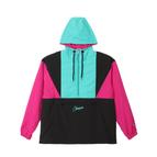 表地はマット調でしわ感のあるナイロン生地、裏地にはメッシュを使用したフーデッドアノラックジャケットです。身幅、肩幅、袖幅にゆとりを持たせたACTION STYLE(アクションスタイル)独自のサイジングのリラックスシルエット。裾はドローコードでフィット感を調節できます。1990年代を彷彿させる多色の切り替えデザイン。腹部には手書き風の「Champion(チャンピオン)」の刺繍入りです。前身頃に大きなカンガルーポケットとジップ付きポケットを備え、高い収納力。同素材を使用したロングパンツ(C3-D208)も展開しているので、セットアップでの着用もオススメです。