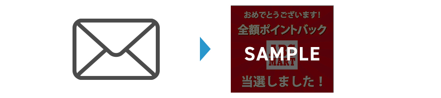 期間中に店舗受取りサービスにて購入された方から抽選でポイントバック当選をメールでお知らせいたします。