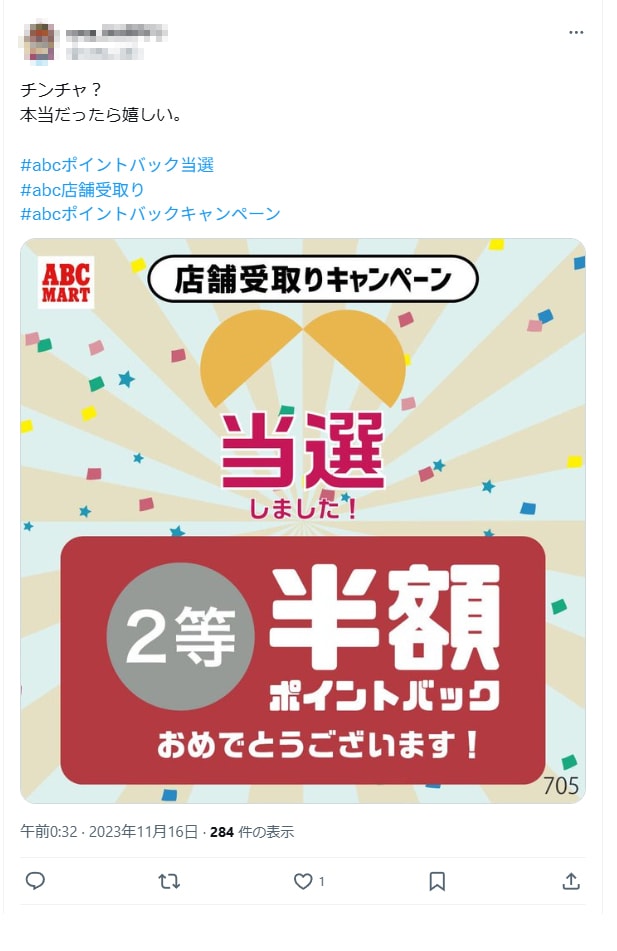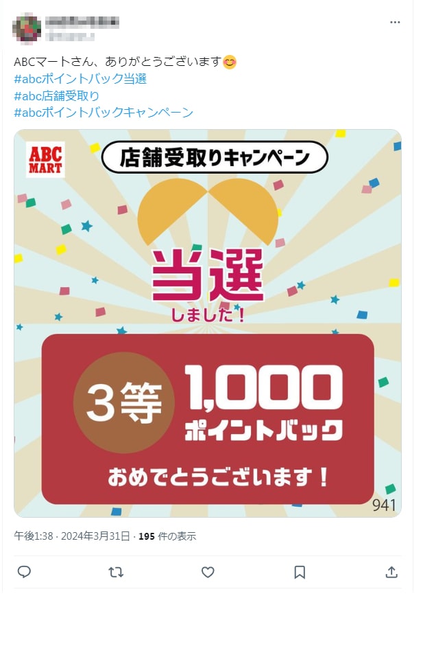 - #abcポイントバック当選