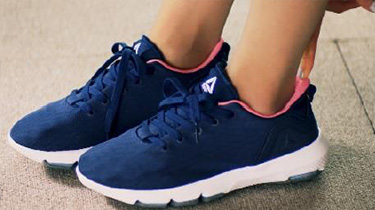 アッパーはシンプルなデザインにカジュアルなニット調の素材を採用。柔らかな履き心地はフィットネスやウォーキングから普段履きにも履ける汎用性の高いモデルです。