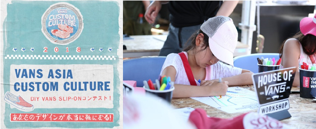 限定ワークショップ開催以外の時間でも、現在開催中のVANSのデザインコンテスト<CUSTOM CULTURE>にその場で塗り絵してご応募頂けるスペースとして常時開放致します。