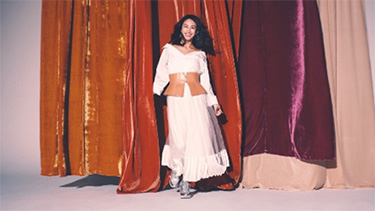 写真を撮られるのが嫌で、カーテンにグルグル巻きになってしまう神山さん