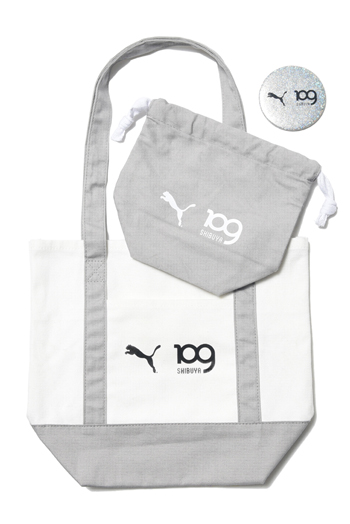 ノベルティー内容: プーマx SHIBUYA109 スペシャルトートバッグ、巾着、ミラー3点セット。