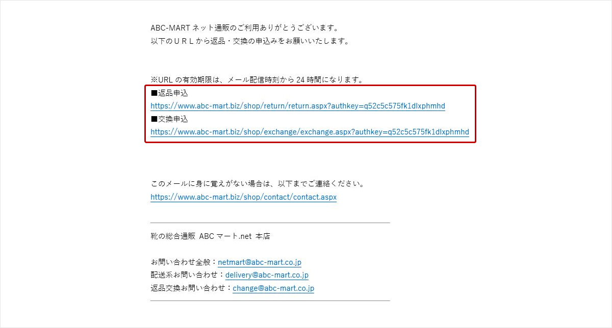 Step2:「返品・交換申込のご案内」メールの受信
